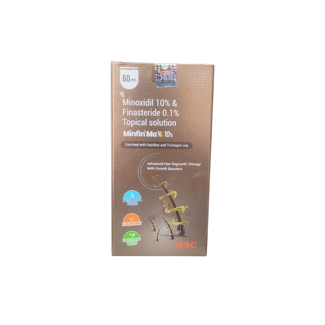 Minfin Max 10% is a hair regrowth solution made by combining two powerful ingredients: Minoxidil (10%) and Finasteride (0.1%). It is used on the scalp to treat hair loss in men. It helps make hair stronger, thicker, and promotes new hair growth.