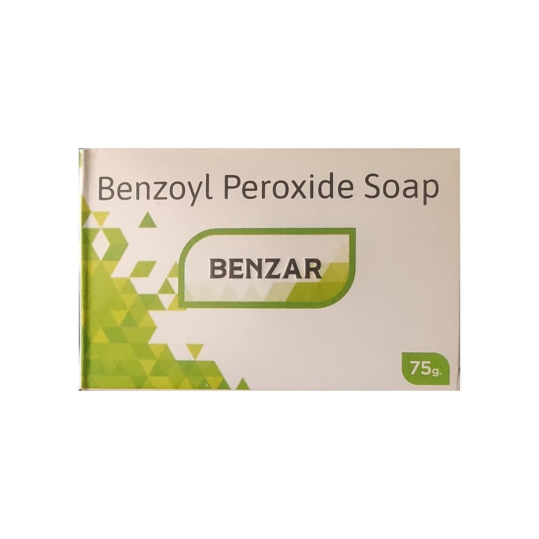 Benzar Benzoyl Peroxide Soap is a 75g bar designed to fight acne and keep skin fresh. It works by killing bacteria and cleaning deep into the pores. This soap also helps control oil and prevents new pimples from forming. It is best for people with oily or acne-prone skin. Regular use can lead to clearer and healthier skin.