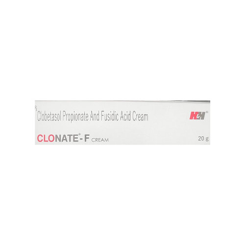 Clobetasol Propionate and Fusidic Acid Cream (Clonate-F Cream) is a medicated skin cream used to treat skin problems like infections, inflammation, redness, and itching. It has two main ingredients: