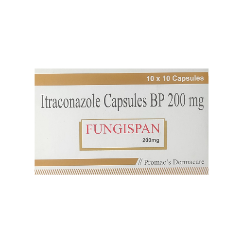 Itraconazole Capsules BP 200mg (Fungispan 200mg Capsules) is a medicine used to treat infections caused by fungi (a type of germ). It belongs to a group of medicines called antifungals. These medicines help stop the fungi from growing and causing more infection.