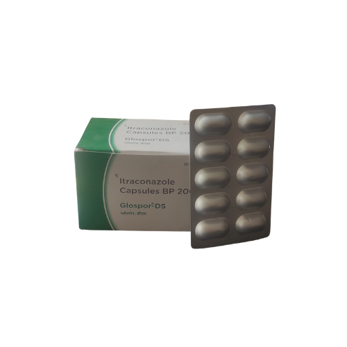 Itraconazole (Glospor-DS Capsules) is a medicine that treats fungal infections. It comes as capsules, and each capsule has 200 mg of the medicine.