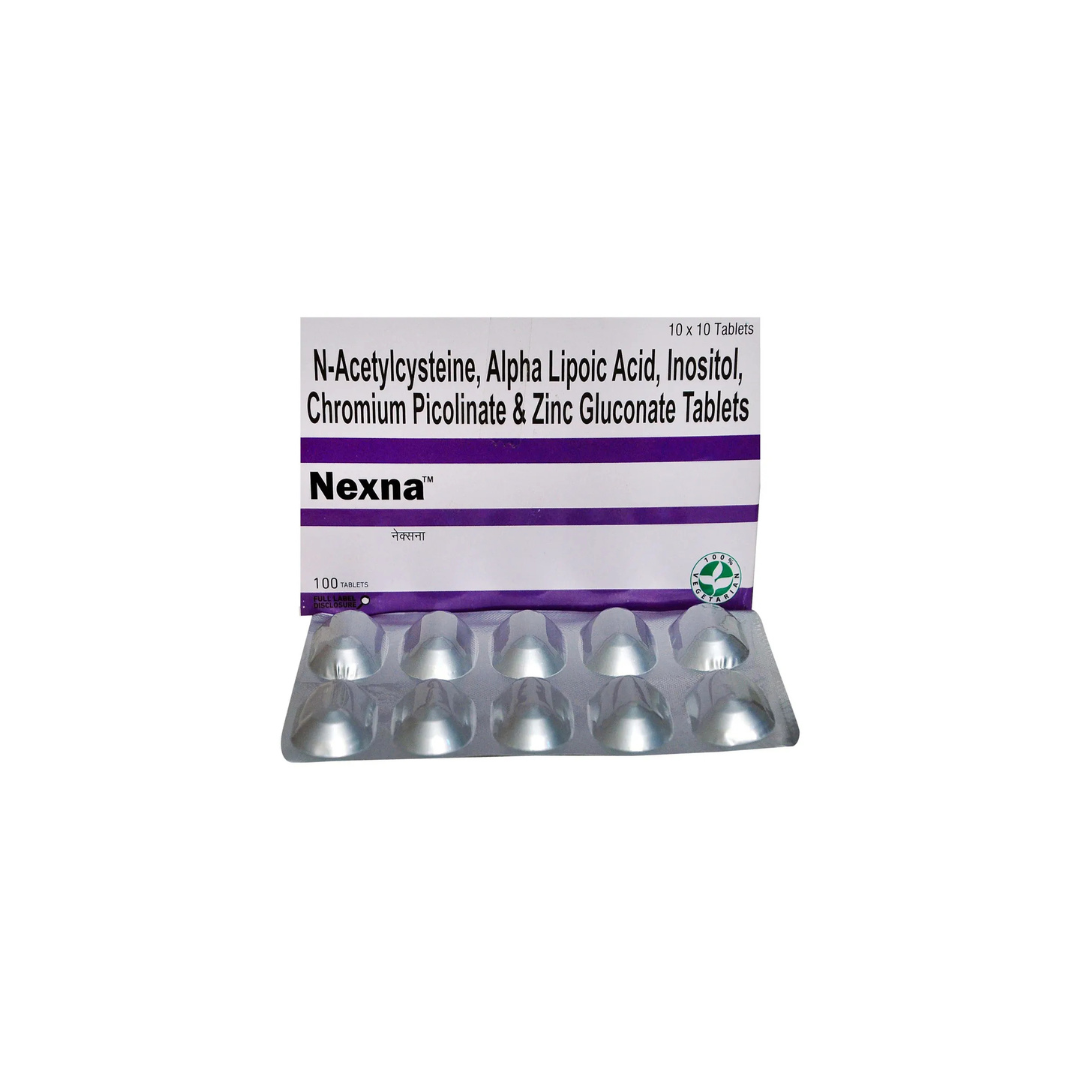 Nexna Tablets have NAC, Alpha Lipoic Acid, Inositol, Chromium, and Zinc. These nutrients help improve metabolism, balance hormones, support skin health, and improve overall wellness.