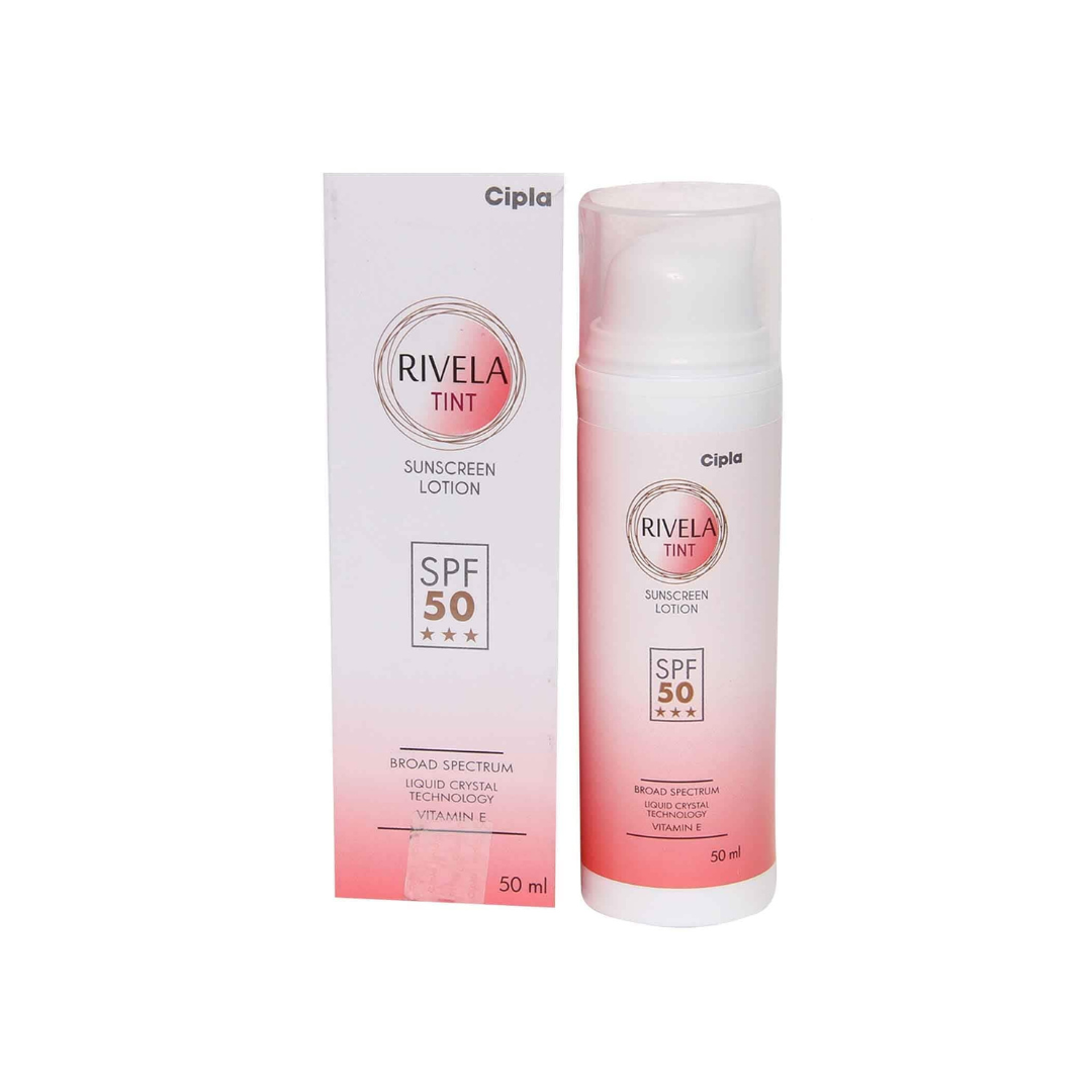 Rivela Tint is a sunscreen lotion with SPF 50 that provides broad-spectrum protection against UVA and UVB rays. It comes with a natural skin-tone tint that blends well into the skin, offering both sun protection and a smooth, even finish. The lightweight, non-greasy formula makes it ideal for daily use and helps prevent tanning, dark spots, and early signs of aging caused by sun exposure.